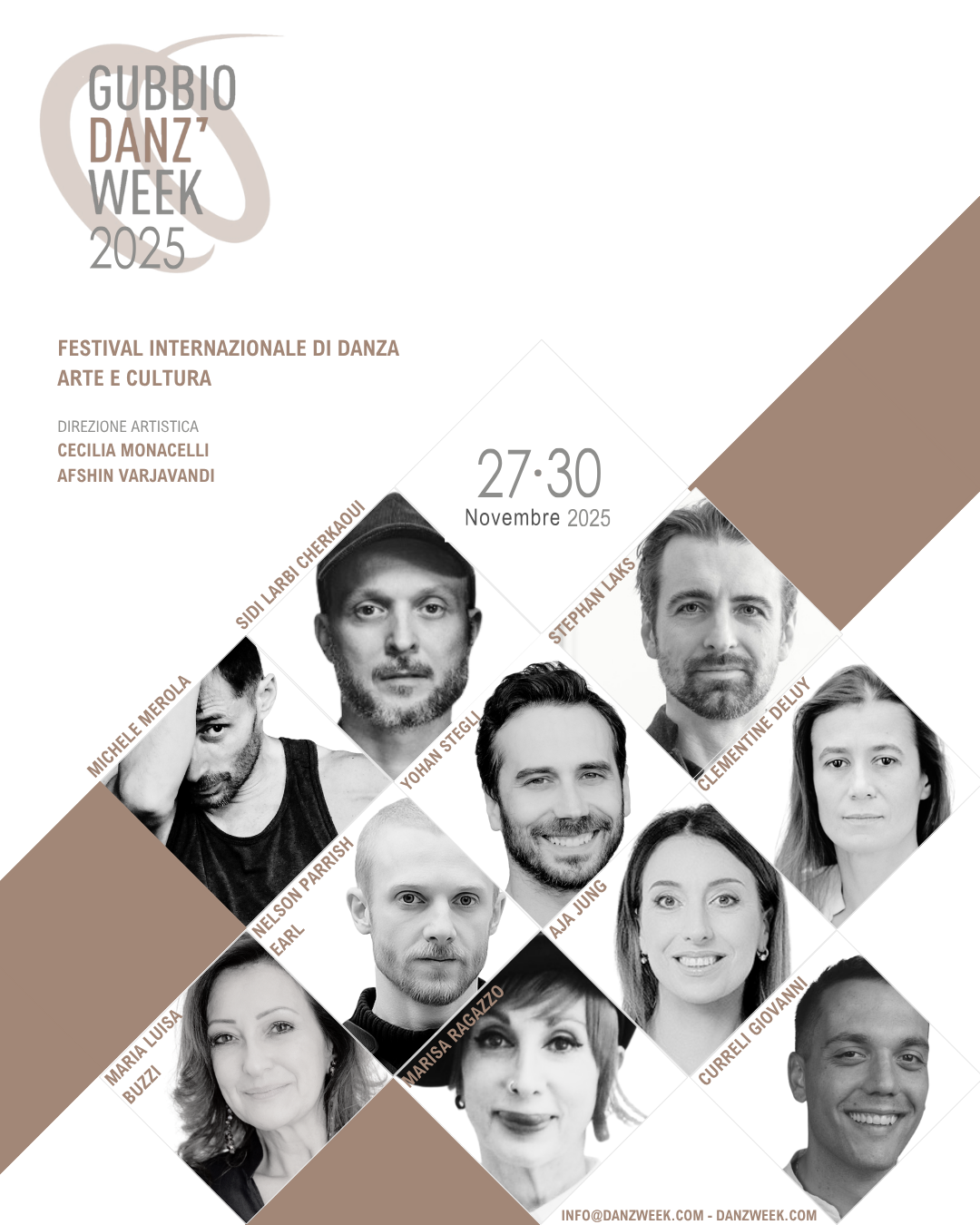It is an international dance festival that takes place every year in Gubbio, in the month of November. Conceived and created by Prof. Cecilia Monacelli, director of Danz’Art – Professional Training Center in Gubbio, and organized together with Afshin Varjavandi, international choreographer and master, who has for years been a prominent figure in the dance world. The project is held under the patronage and in collaboration with the Municipality of Gubbio, CSEN Perugia, recognized by Sport e Salute and CONI. This is an internationally significant educational event aimed at supporting the artistic growth of young dancers, both in terms of training and exchange. The Week includes workshops, seminars, meetings with theater and festival directors, journalists, critics, and experts, all directed at students and teachers. The program also features art exhibitions, book presentations, and a variety of live performances. Dance-related events intensify on Friday, Saturday, and Sunday, with workshops, open classes, competitions, and a gala, while the earlier days of the week are dedicated to a lab with the Fondazione Accademia Nazionale di Danza, as well as training, education, and awareness-raising activities aimed at young people and schools in the area. The event also engages local artistic and cultural communities, focusing on sensitive topics — such as those highlighted in the new edition: GUBBIO DANZ'WEEK Professional Hub | a circuit of professional experiences. The GUBBIO DANZ’WEEK COMPETITION always concludes with the final Gala on Sunday afternoon, featuring performances by dancers and international guest companies, as well as all the competition finalists. During this event, the winners of the competition are announced. A key priority of the Artistic Direction is the careful selection of teachers and jury members, chosen specifically to offer young dancers constant inspiration — but above all, visibility and real professional opportunities, thanks to the participation of directors from leading national and international academies, theaters, and dance companies..